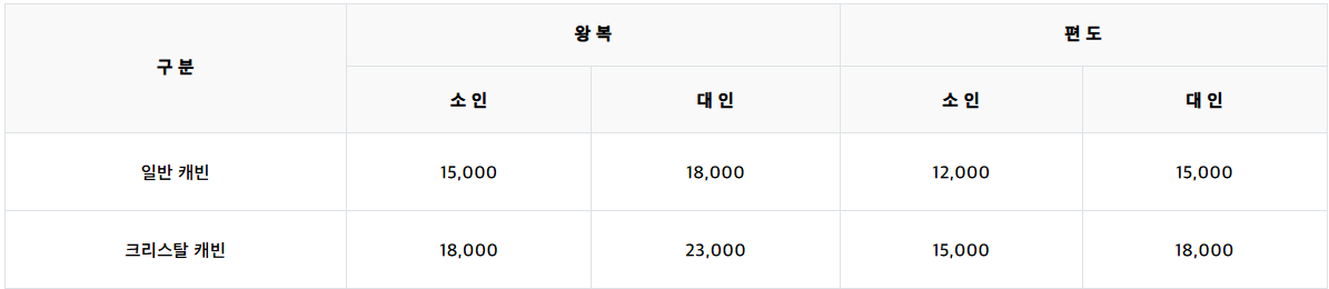 6) 왕복권을 발권하여 편도 구간만 이용하더라도 잔여 구간에 대한 금액을 반환하지 않습니다.