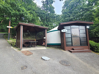 ※ 야영데크에 벽면과 지붕만 있는 구조 입니다. (화장실, 샤워장, 취사도구, 침구류 등 편의시설 없음)