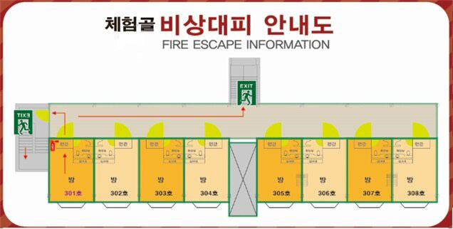 - 방이름과 면적 : 체험골1,2,3,4,5,6,7,8 (5인실, 27㎡)