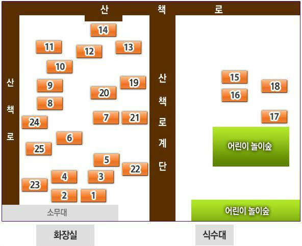 - 편의시설 : 공동샤워장, 공동화장실, 급수대, 전기
