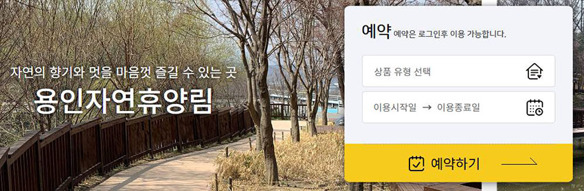 1. 용인 자연휴양림 웹사이트에 접속하여 로그인합니다.