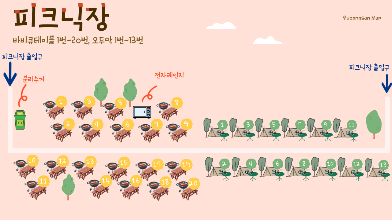 - 유형 : 바베큐 테이블 1호 ~ 20호
