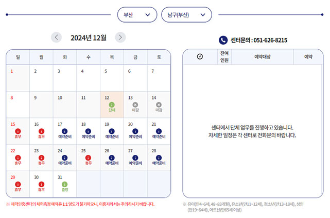 1. 센터별로 운영 시간과 예약 가능 여부가 다를 수 있으므로, 사전에 확인이 필요합니다.