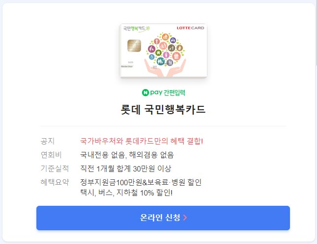 - 쇼핑 혜택: 대형마트, 온라인 쇼핑몰에서 5% 할인