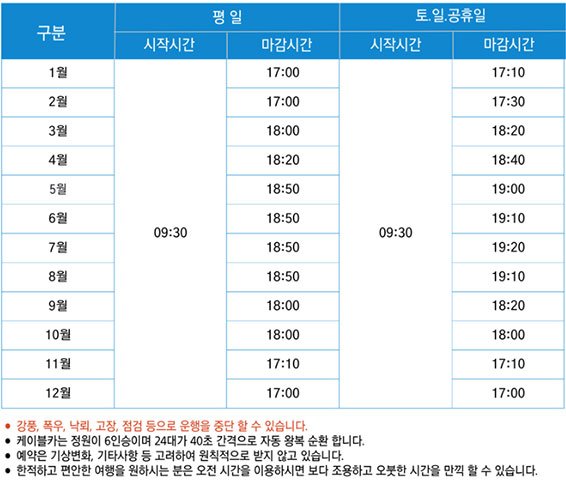 - 휴무일정 : 연중무휴 (안전 점검 및 기상 악화 시 휴장)