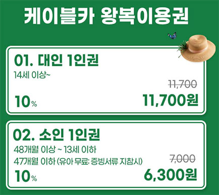 - 단체 : 25인이상 동일단체 동시 탑승시 할인