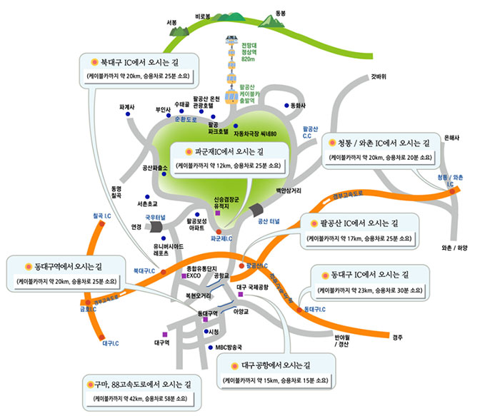 - 주소 : 대구광역시 동구 용수동 산72, 팔공산케이블카