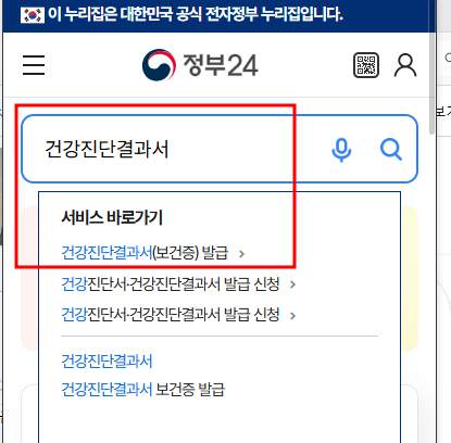 2. "건강진단결과서(보건증) 발급" 검색하면 나오는 목록에서 첫번째 항목을 선택.
