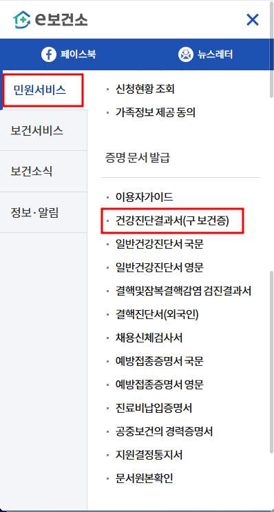 정부24나 e보건소 공공보건포털을 통해 온라인으로 발급받는 건강진단결과서는 보건소에서 실시한 검진 결과만 포함합니다.