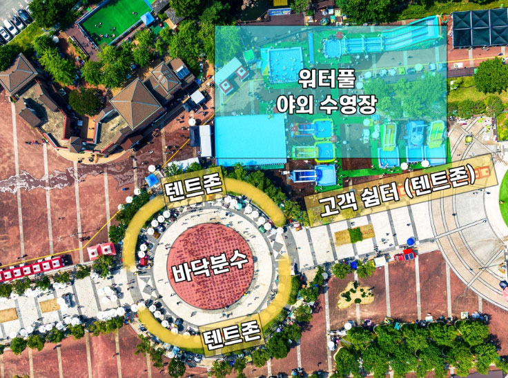 - 물놀이 용품 판매소: 수영복, 수영모, 물총, 고글, 방수팩 등 현장 구매 가능