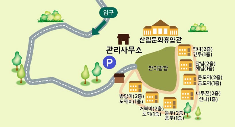 ▶ 휴양림내 금연 (지정된장소에서 가능)