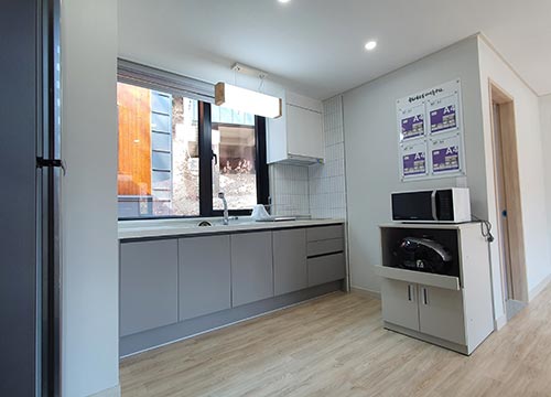 - 냉장고/에어컨/TV/이불장/수저세트/식기/전기밥솥/전자레인지/하이라이트/테이블+의자