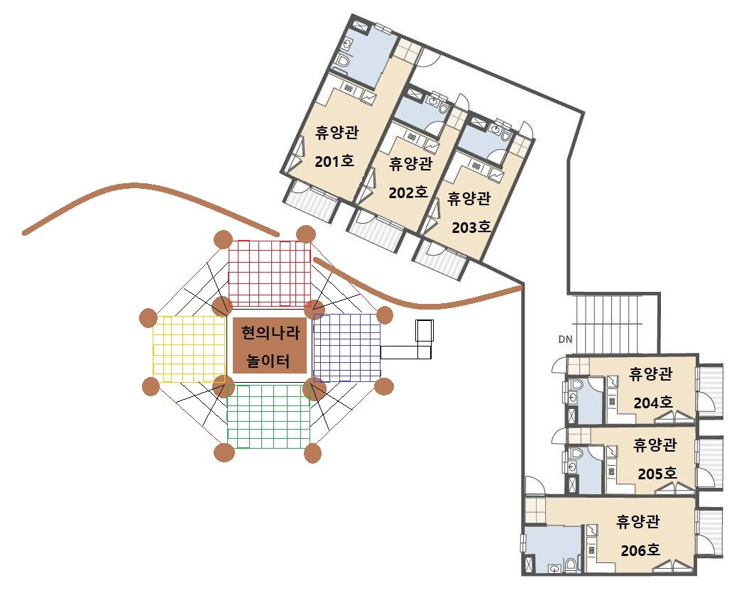 부대시설로는 아이들의 놀이터인 현의나라와 철의 나라, 목공예체험실, 산책로가 있습니다. 아름다운 자연을 아이들과 함께 누려보세요.