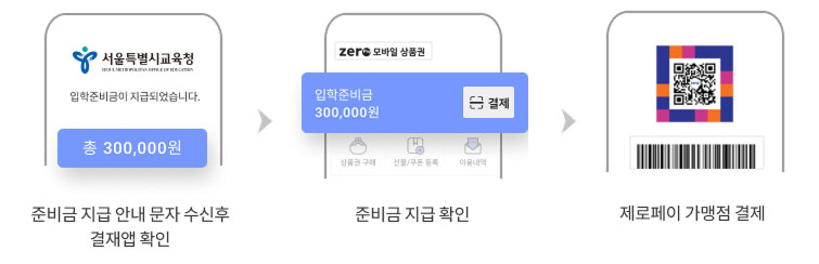 - 의류, 가방, 신발, 도서, 문구, 안경, 전자기기 등 업종 입학준비금 제로페이 가맹점 (일부 가맹점은 제외 될 수 있음)