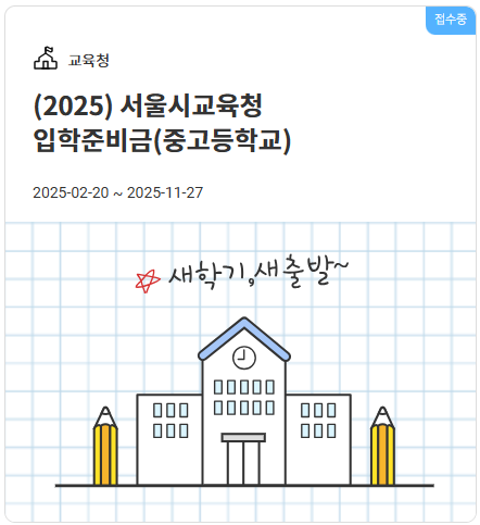 2025년 서울시 중고등학교 입학지원금 신청기간은 다음과 같습니다.