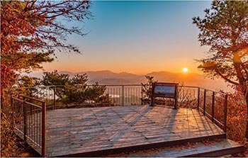 심학산에서는 쭉 뻗은 자유로와 한강, 김포, 관산반도를 바라보며 삼림욕을 즐길 수 있습니다. 마치 산책을 하듯 편안하게 걸어 오를 수 있는 완만한 등산로가 있어 아이를 동반한 가족도 편안하게 일출을 즐길 수 있습니다.