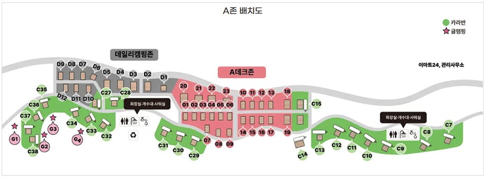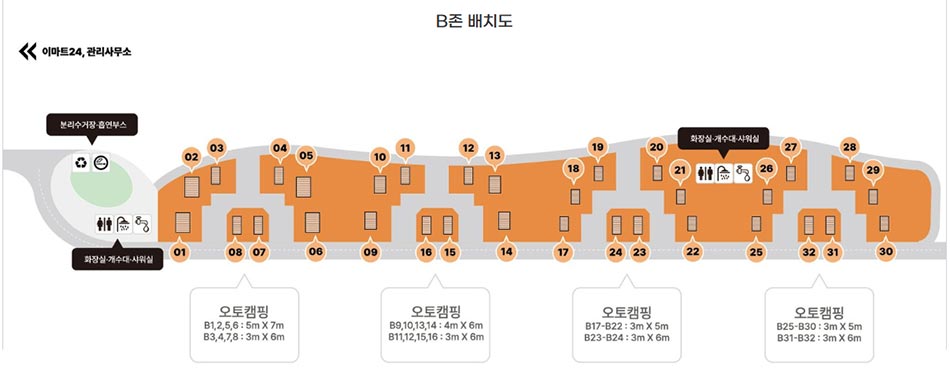 - 오토캠핑: 14:00 입실 ~ 11:00 퇴실