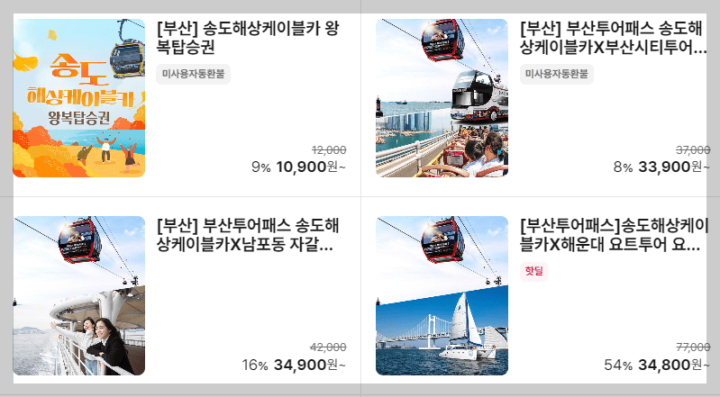 케이블카와 부산의 다른 명소를 연계한 패키지 상품을 이용하면 더 큰 할인 혜택을 받을 수 있습니다. 예를 들어 송도 스카이워크와 연계된 패키지, 해양 레저와 결합된 패키지 등이 있으니, 패키지 상품을 활용하는 것도 좋은 방법입니다.