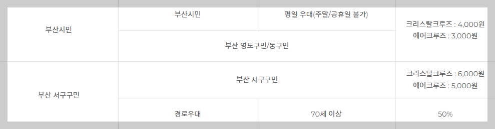 부산 주민이라면 거주지 증명서를 제시하고 할인 혜택을 받을 수 있습니다. 거주지 확인 후 할인 적용이 되니, 부산에 사는 친구나 가족과 함께 가면 좋습니다.