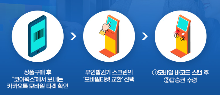 카카오톡 모바일로 발권한 티켓이 전달됩니다. 여수 해상 케이블카 현장의 무인발권기 스크린에서 모바일티켓을 교환하고 탑승권을 수령하시면 됩니다.