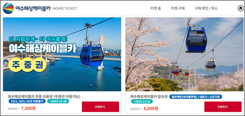 여수 케이블카 온라인 발권하기
