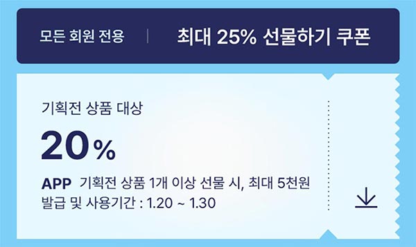 1. 모든 회원 전용으로 25% 선물하기 쿠폰을 제공합니다.