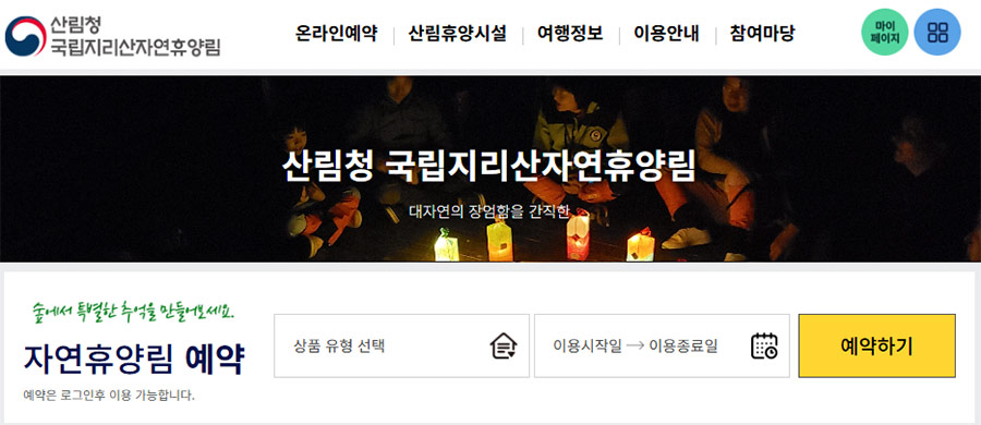 1. 지리산 자연휴양림 웹사이트에 접속하여 로그인합니다.