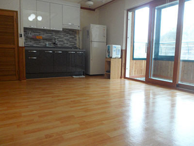 - 화장실, 냉장고(225ℓ), 씽크대, 인덕션, 식탁, 주방기구, 침구, 전기밥솥(6인분), TV(21)