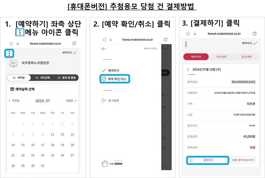 추첨응모 당첨자에 한하여 결제방법을 알려드립니다. 모바일버번과 PC버전을 알려드리니 참고하시어 결제하세요!