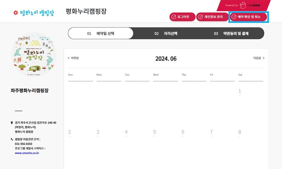 ▷ 캠핑장 홈페이지 [예약하기] 접속