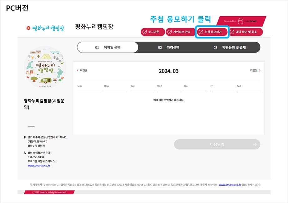 평화누리캠핑장 추첨응모 신청하기