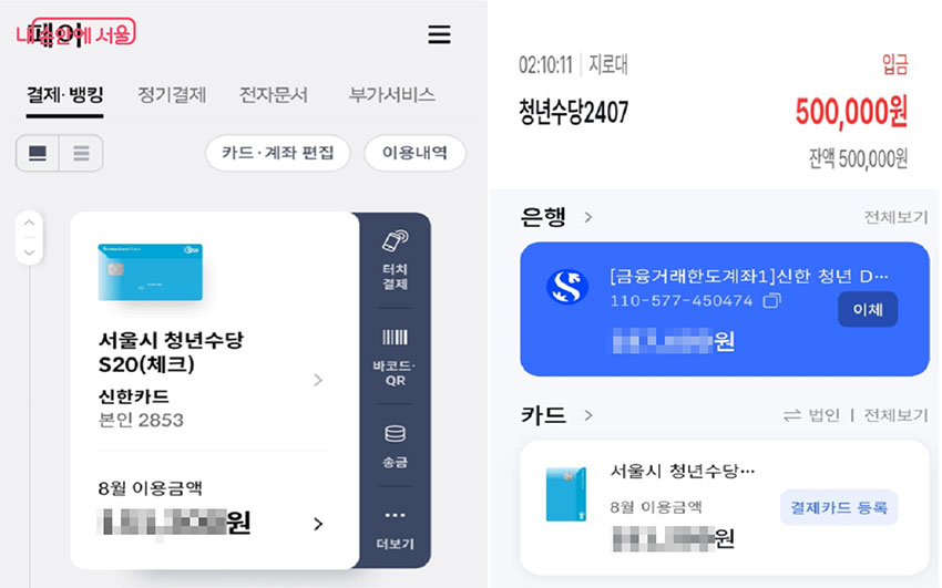 2025년 서울시 청년수당 체크카드 설치하기