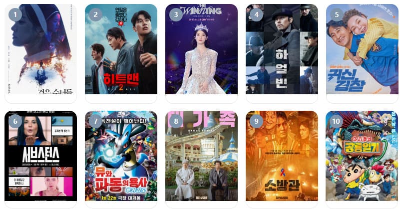 2025년 1월 현재 영화순위를 알려드리겠습니다. 각 영화별 기본정보와 바로 예매할 수 있는 사이트를 연결해놓았으니 빠른 정보 챙겨보시길 바랍니다.