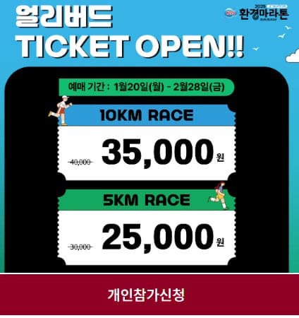 얼리버드 신청기간에는 참가비가 5000원 할인된 가격으로 참가할 수 있습니다. 얼리버드 기간이 끝난 3월부터는 일반가로 접수가 되니 빠르게 신청하셔서 할인 받으세요!