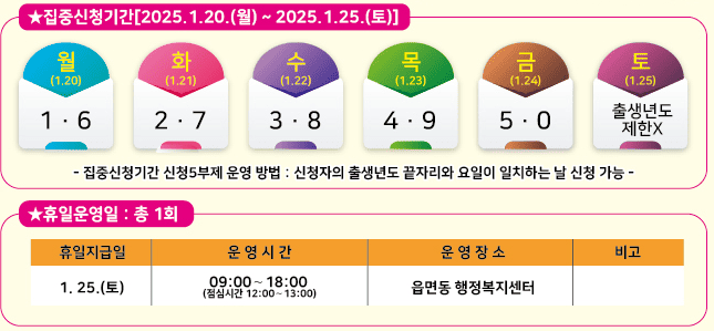 - 집중 신청기간 : 2025년 1월 20일(월) ~ 1월 25일(토)