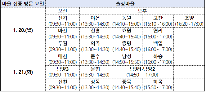 - 마을 집중 방문기간 : 2025년 1월 20일(월) ~ 21일(화)