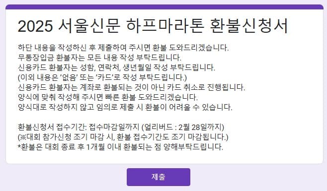 2025 서울신문 하프마라톤대회 💰 환불신청 안내