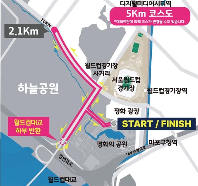 - 출발: 상암 평화의 공원 평화광장 -> 한강 시민공원코스 (정확한 경로는 공식 홈페이지 공개 예정)