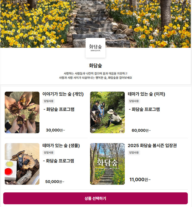 - 화담숲 상품 구매하기 [ 화담숲(필수예매), 화담채(선택예매),모노레일(선택예매) ]
