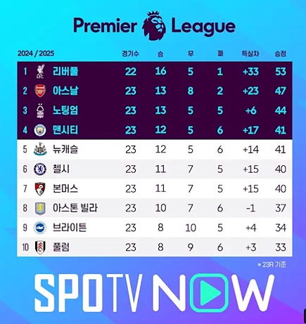 24-25시즌 프리미어 리그 중계는 스포티비에서 방송됩니다. 스포티비(https://www.spotvnow.co.kr/)는 PC에서 바로보기 할 수 있으며 모바일에서 앱을 다운로드하여 시청하실 수 있습니다. 단, 스포티비는 유료 구독 후 이용가능 합니다.